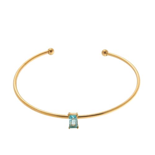 The Lauren Birthstone Bangle features a sleek, minimal open cuff design with a radiant baguette-cut cubic zirconia birthstone at the center. Made from premium stainless steel, this bangle is hypoallergenic, tarnish resistant, and perfect for everyday wear. Its lightweight, elegant style makes it ideal for stacking, gifting, or adding a personalized touch of color to any outfit.