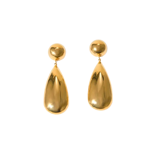 The Sally Teardrop Earrings feature a sleek, polished gold metal teardrop design that adds instant sophistication to any look. Crafted from premium stainless steel, they’re hypoallergenic, tarnish resistant, and lightweight for comfortable all-day wear. A timeless, minimal statement for both everyday elegance and night-out styling.